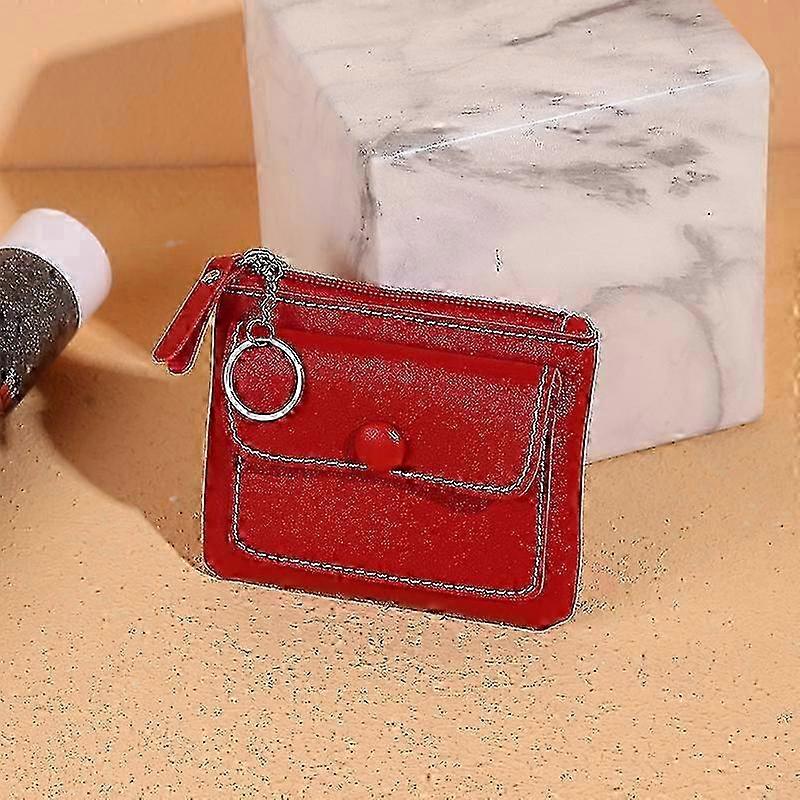 Red Solid-Colored Short Wallet PU Leather Handbag