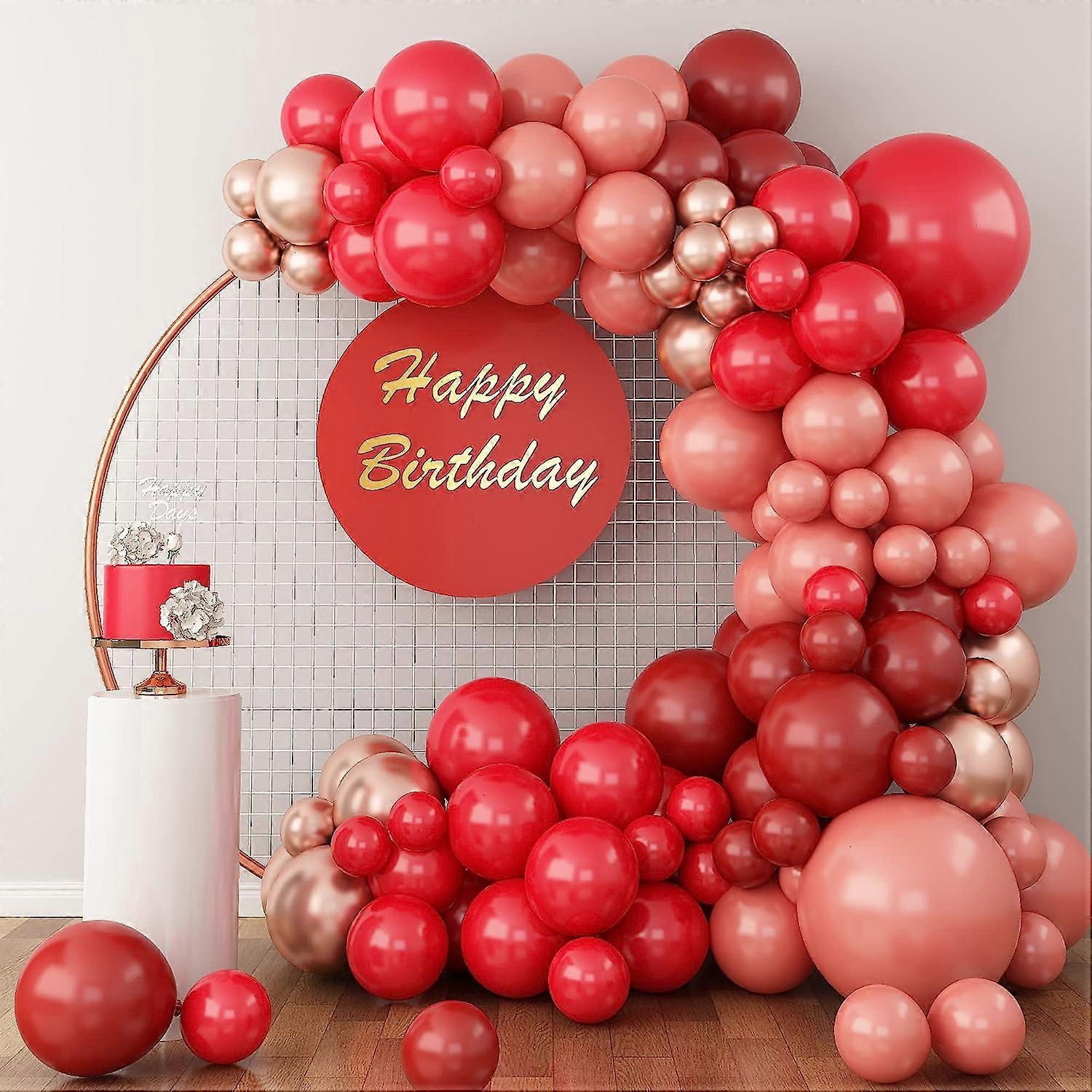Red Balloon Garland Kit, Balloon Arch Kit 112 Pcs, Red Retro Maroon and Pink Metallic Rose Gold Latex Balloons, 5 10 12 18 Inch for Wedding Birthday C