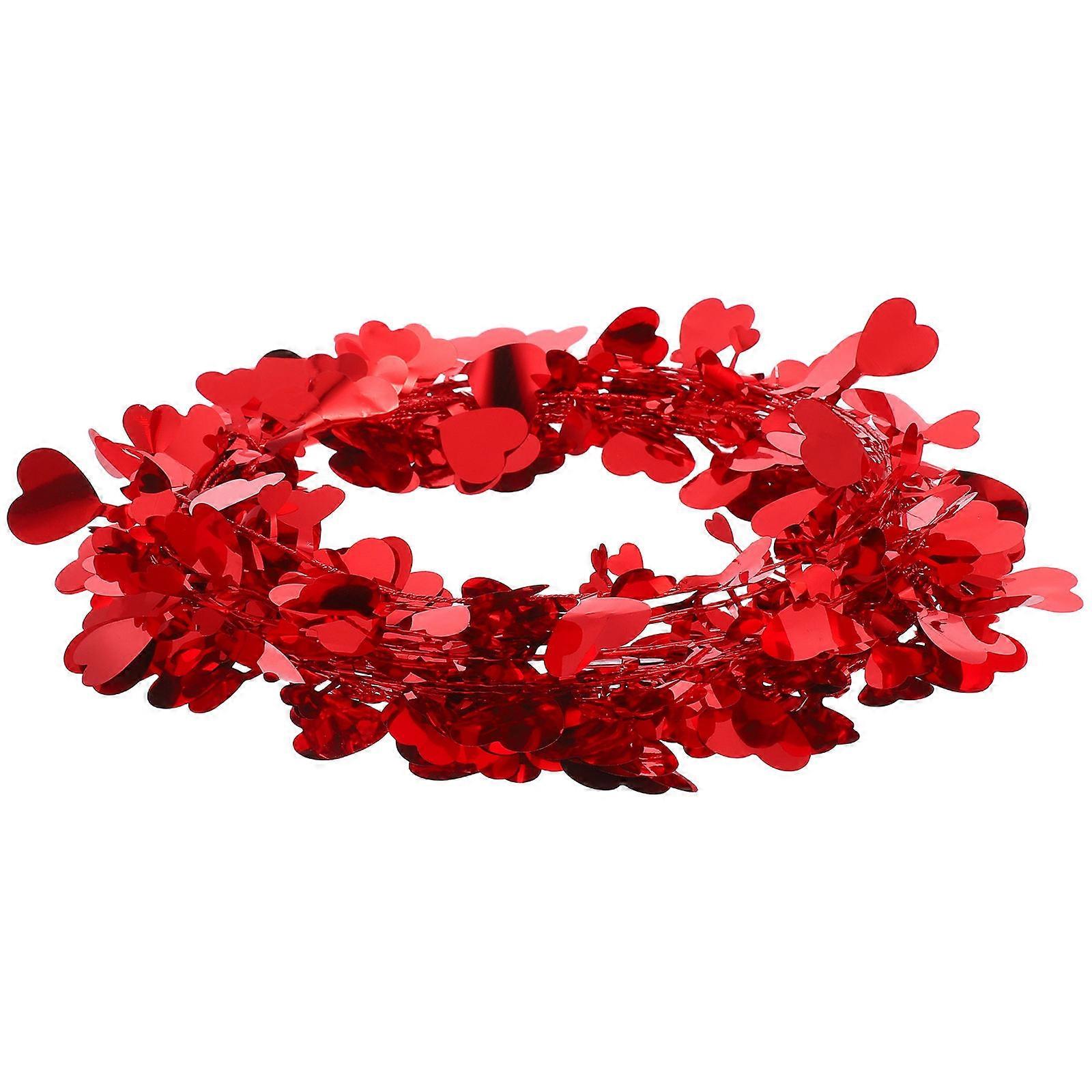 Red Heart Garland Valentines Day Decor Wreath Yard Decoration For Anniversaries And Parties Iron Material Romantic Style 1Pcs