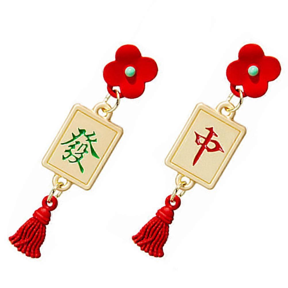 Red Festival Mahjong Dangle Earrings Lightweight Creative Drop Earrings for Women Skin Friendly Comfortable Jewelry Accessory Gift