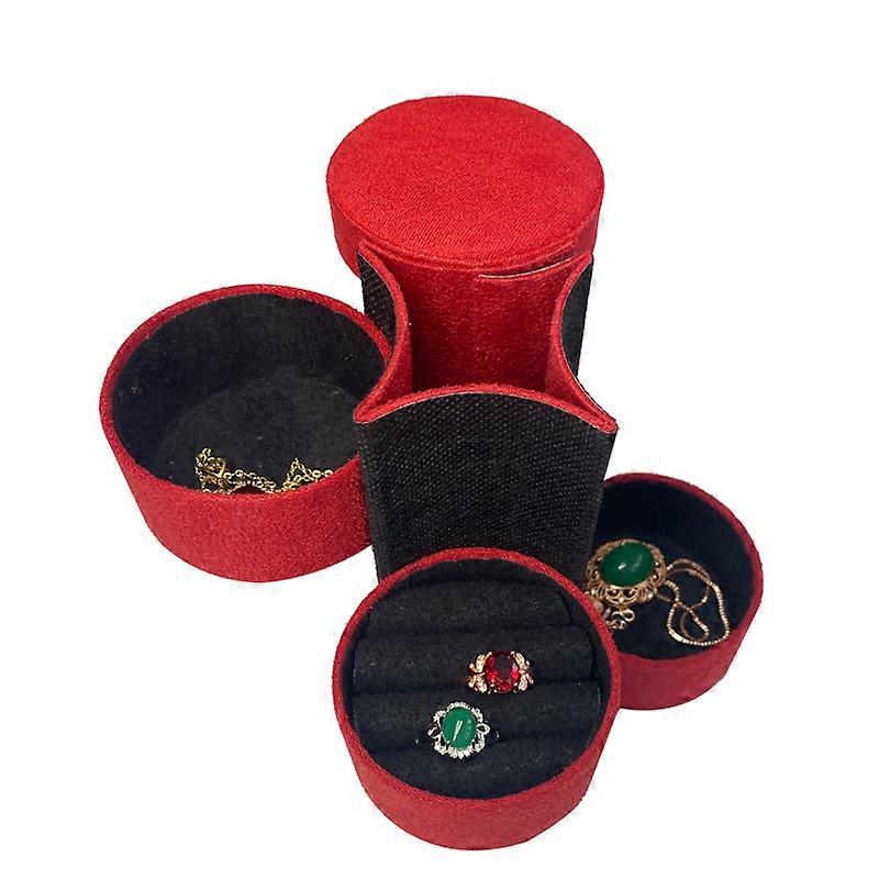 Dimensions: 7 cm in diameter, 13 cm in height 3 cylinders which can contain a watch, a bracelet brooch, etc. Perfect for a weekend getaway or a business trip With a snap closure, it can be rolled up in a crylinder-shaped box for convenient transport. 3-tier containers for storage and organization your rings, necklaces, earrings, bangles, charms, etc. Gift for daughter, wife, mother, daughter.