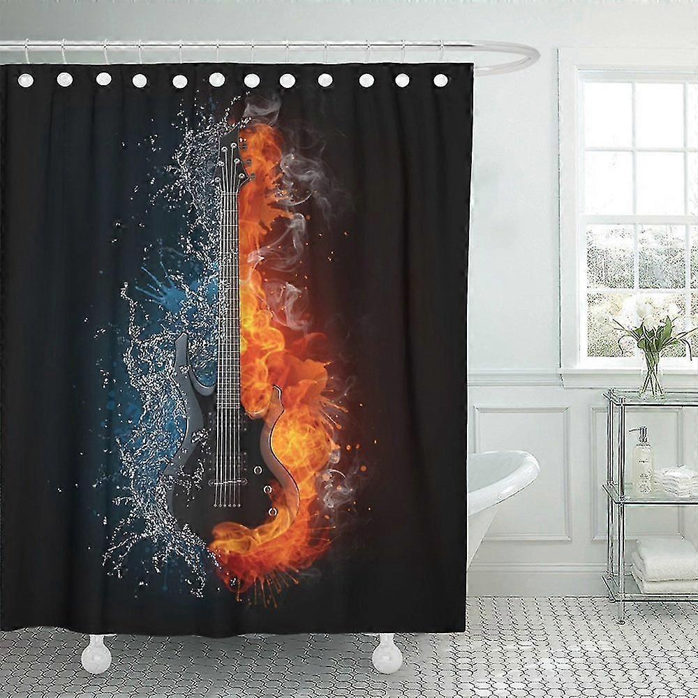 Red Rock Electric Guitar On Fire And Water Black Computer Graphics Roll Music Liquid Back Acoustic Shower Curtain 150x180 Cm