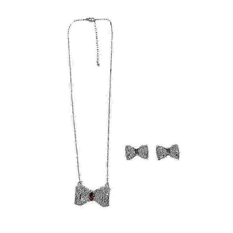 Red Diamond Vintage Zircon Bow Necklace Stud Earrings Crystal