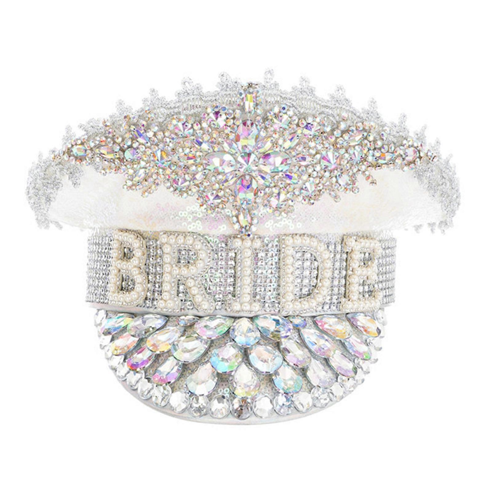 Rhinestone Navy Hat for Lady Wedding Bride Glittering Sergeant Hat Sequins Birthday Party Hat Captain Hat for Night Club A