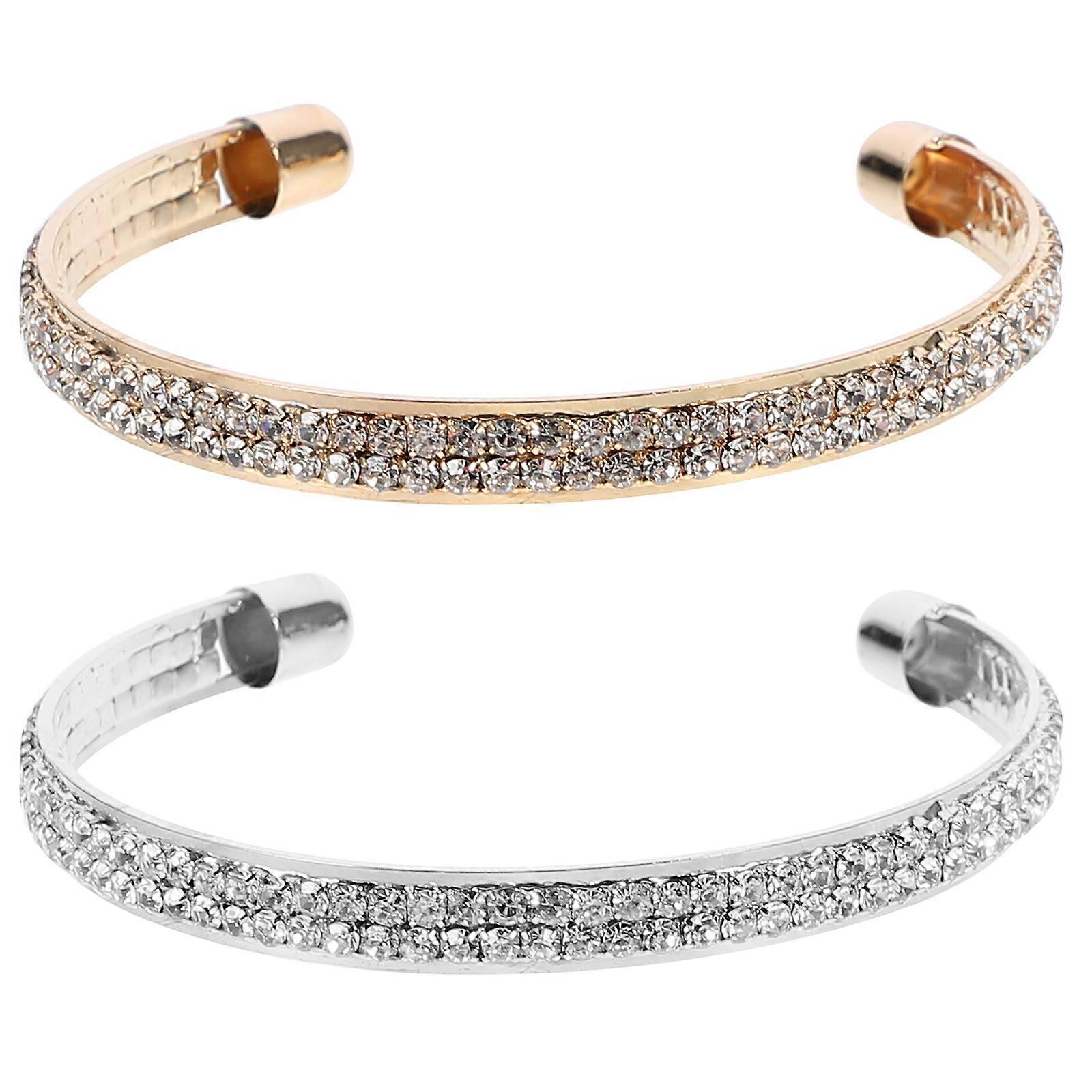 Lady Jewelry Stylish Opening Bracelets Vintage Rhinestone For Wedding Accessory Assorted Color 2Pcs