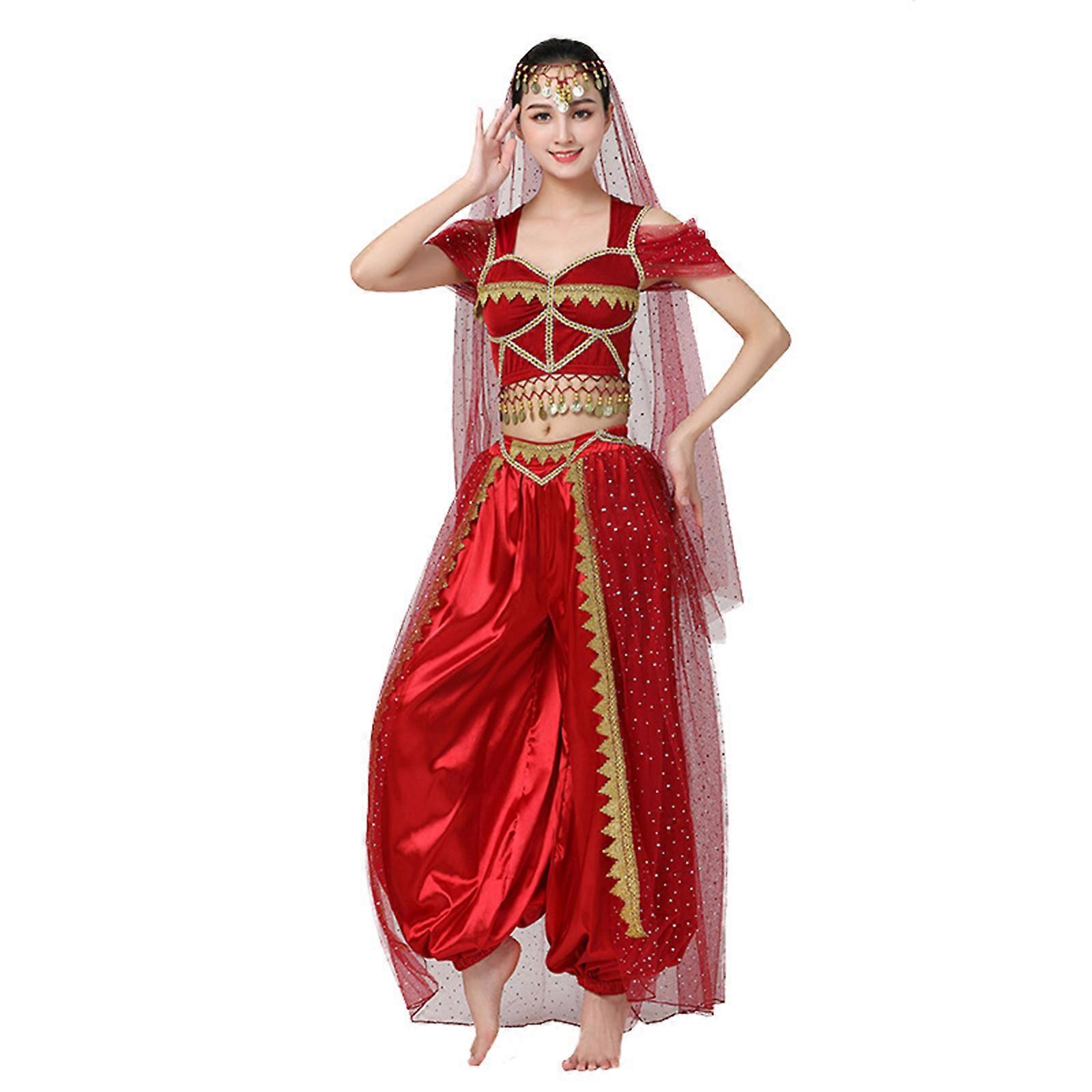 Lady Belly Dancer Costume Belly Dancing Coins Tops Lantern Trousers Veils Headress Halloweem Performances Costume Womens Four piece set of wi XL