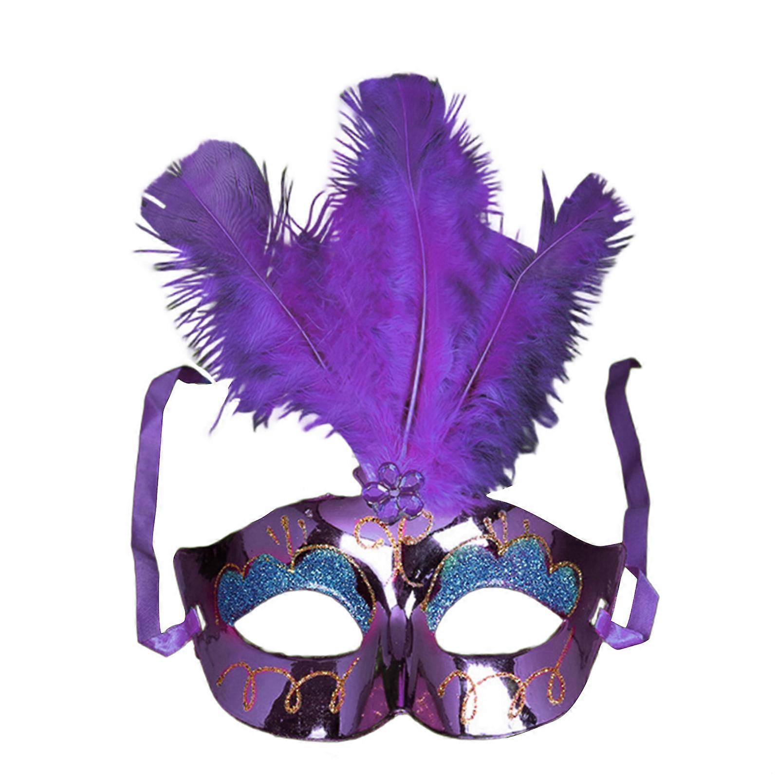 Lady Masquerade Party Dance Costume Halloween Half Face Mask Decorations Halloween Mask Sexy Feather Flower Eye Mask Purple