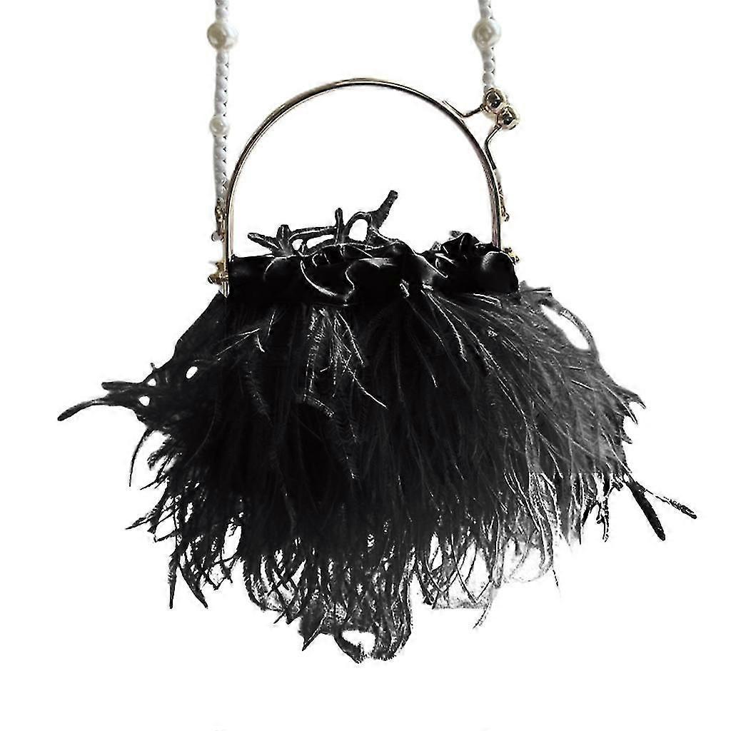 Womens Evening Clutch Bag Ostrich Feather Chain Shoulder Bag Party Wedding Purse