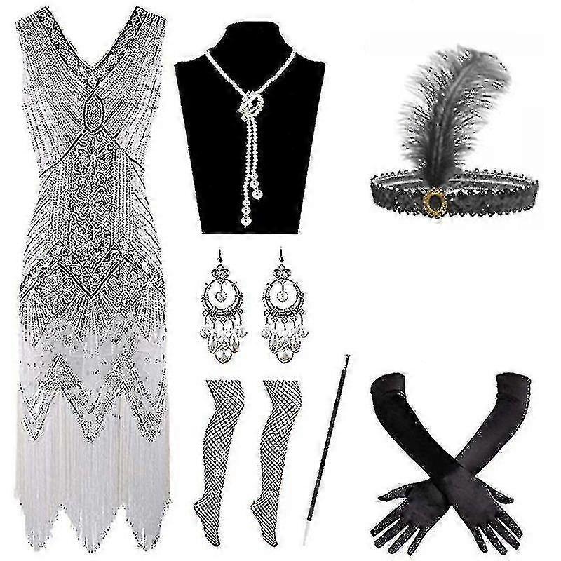 Womens Vintage 20's Flapper With Jewelry Accessories Costume Dress_y High Quality