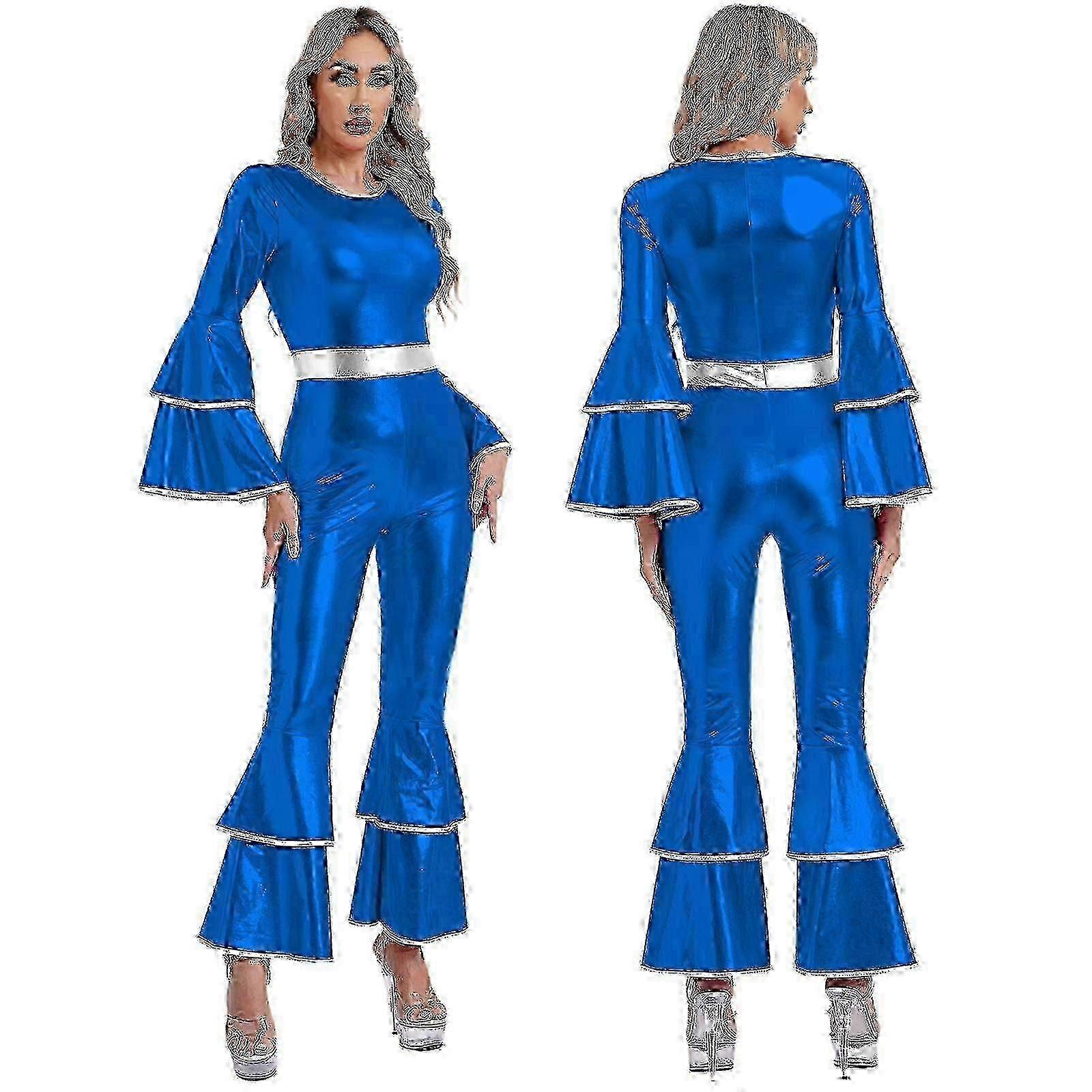 Womens Vintage 70s Disco Shiny Jumpsuit Bell Bottom Romper Cheerleading Costume for Theme Parties Halloween CosplayZZ15