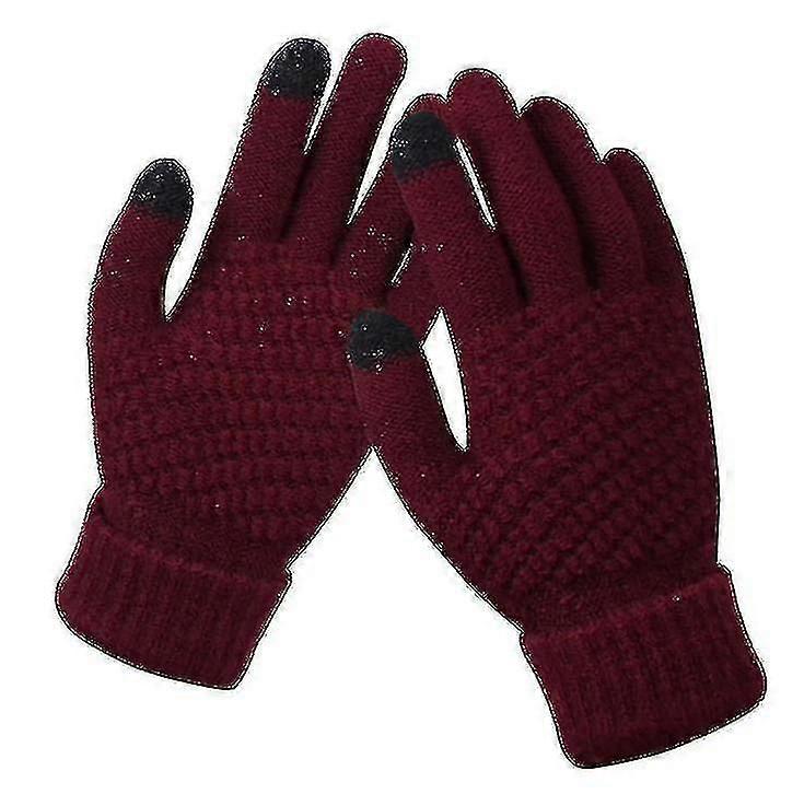Women's Winter Touch Screen Gloves Warm Fleece Lined Knit Gloves Elastic Cuff Winter Texting Gloveswine Red Xxf