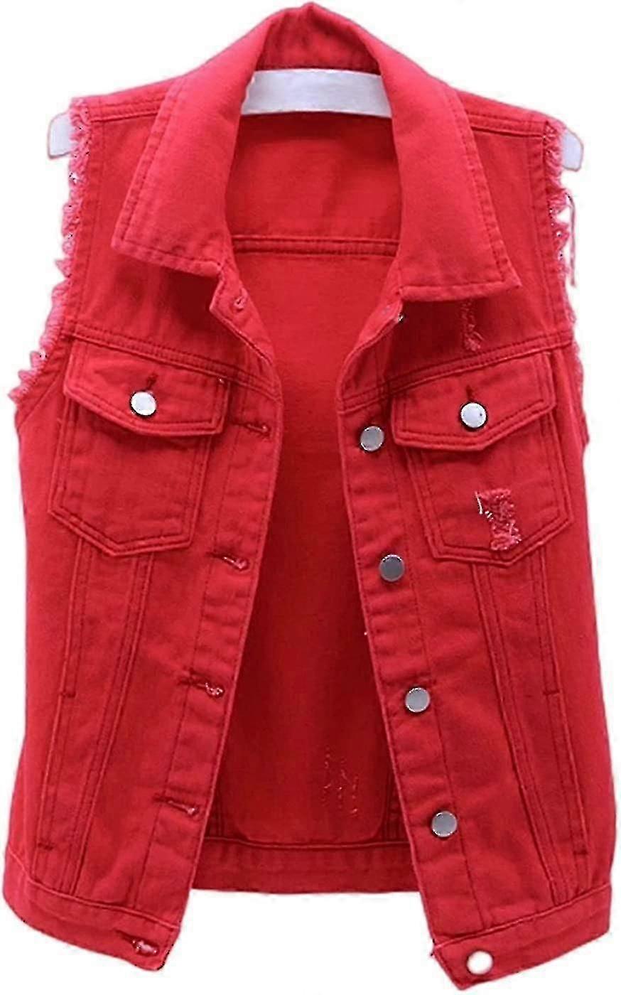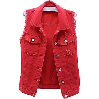 Womens Crop Denim Vest Jacket Sleeveless Button Down Ripped Casual Waistcoat Jacket