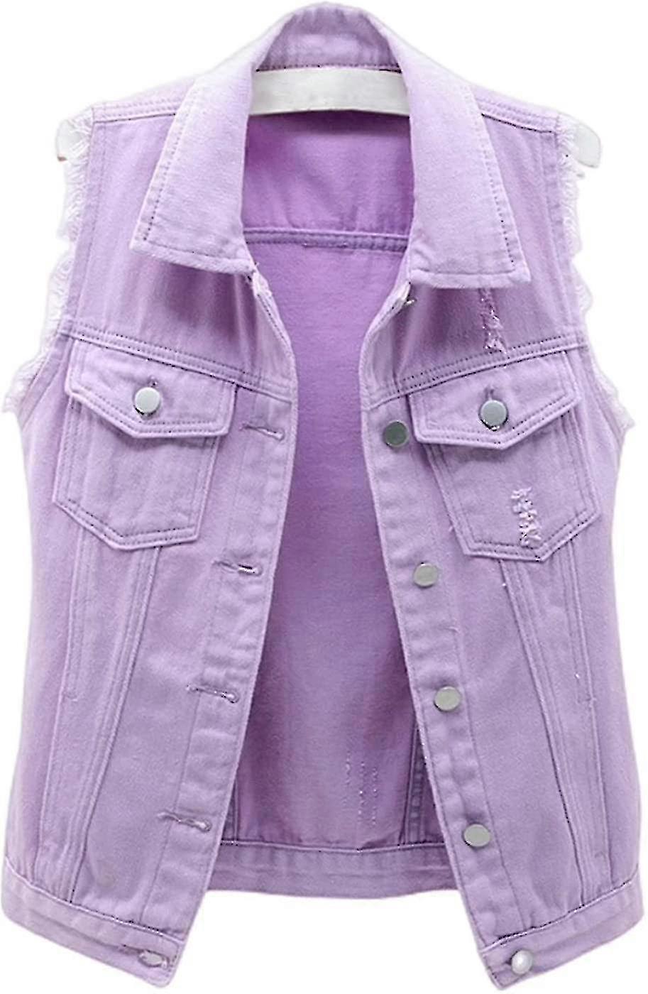 Womens Crop Denim Vest Jacket Sleeveless Button Down Ripped Casual Waistcoat Jacket