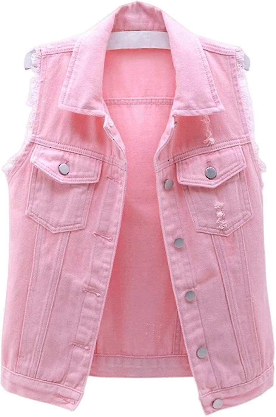 Womens Crop Denim Vest Jacket Sleeveless Button Down Ripped Casual Waistcoat Jacket