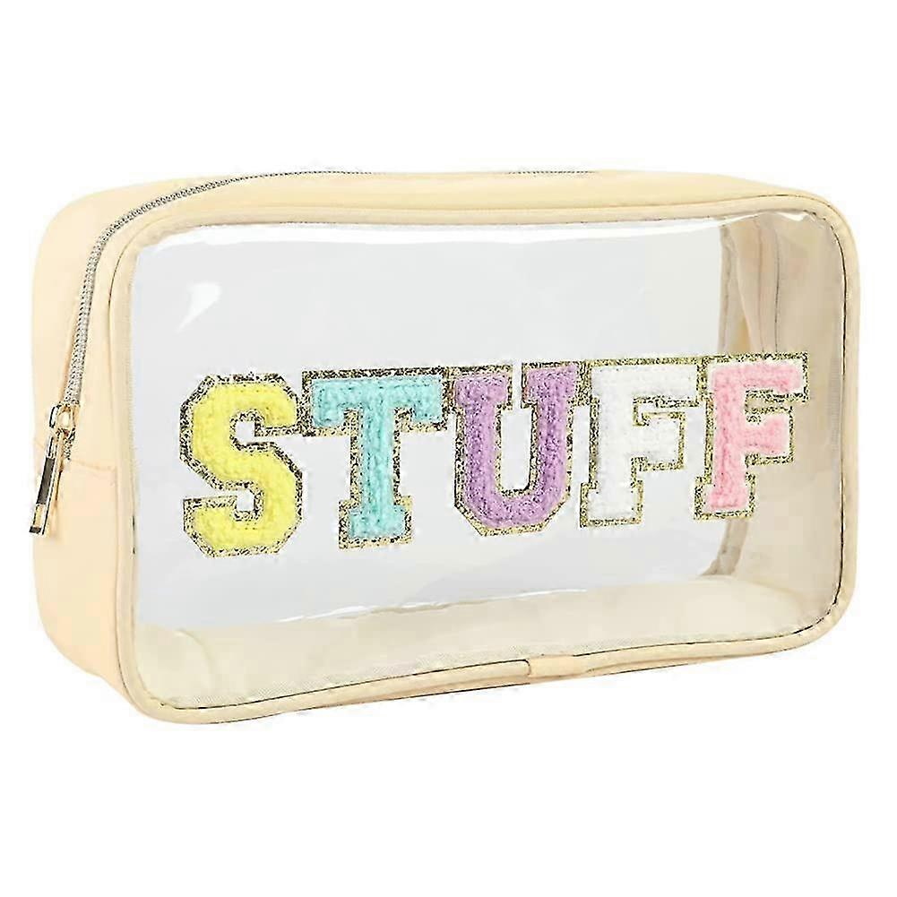 Women's Chenille Letter Cosmetic Bag, Waterproof Nylon Travel Toiletry Pouch with Zipper