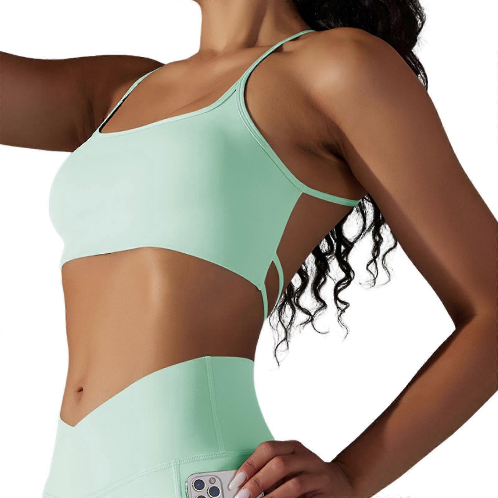 Womens Thin Strap Sports Bra - Padded Wireless Square Neck Workout Yoga Bra, Cross Back Straps Seamless Medium Support