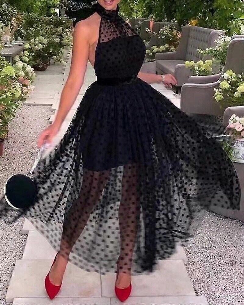 Womens Sexy Cocktail Party Ball Gown Polka Dot Hang Neck Backless Bohemia Dress