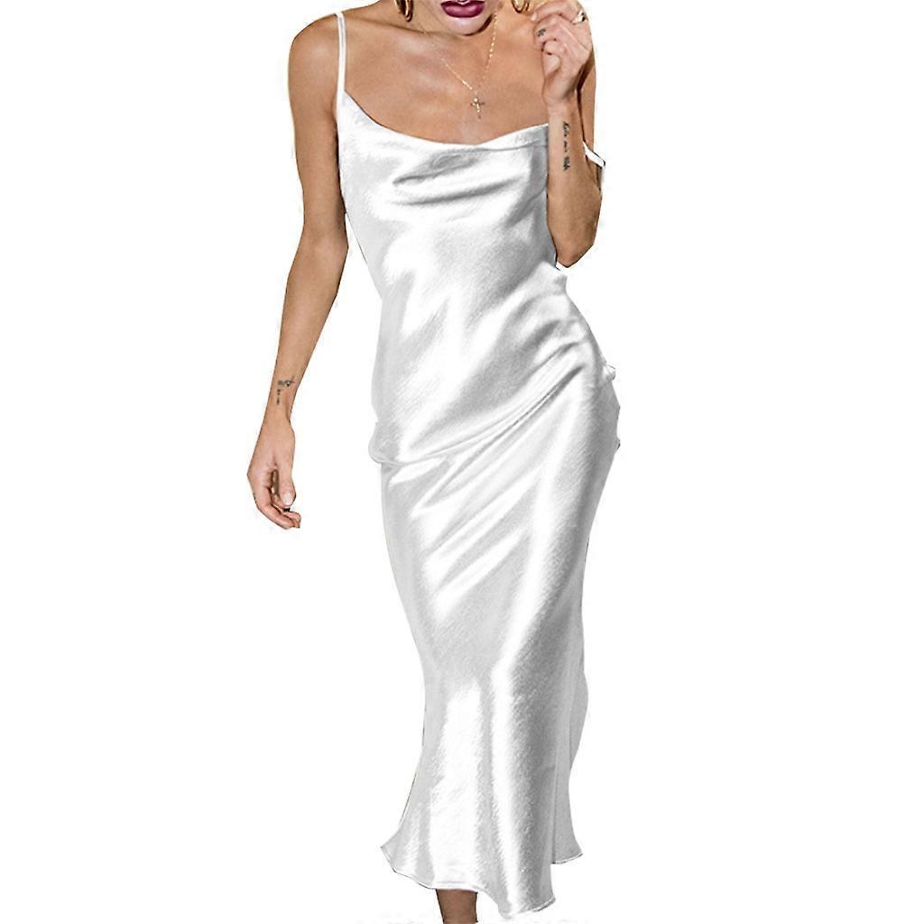 Womens Sexy Spaghetti Strap Cowl Neck Satin Maxi Long Dress Cutout Backless Lace-Up High Waist Slim Fitting Solid Color Cocktail Party Evening Gown