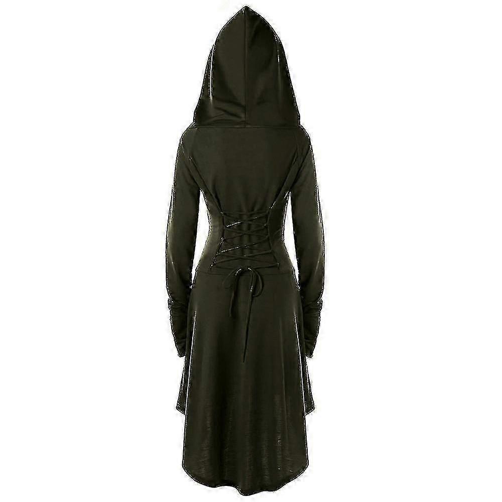 Womens Solid Renaissance Medieval Costume Gothic Long Sleeve Lace Up Hooded Dress