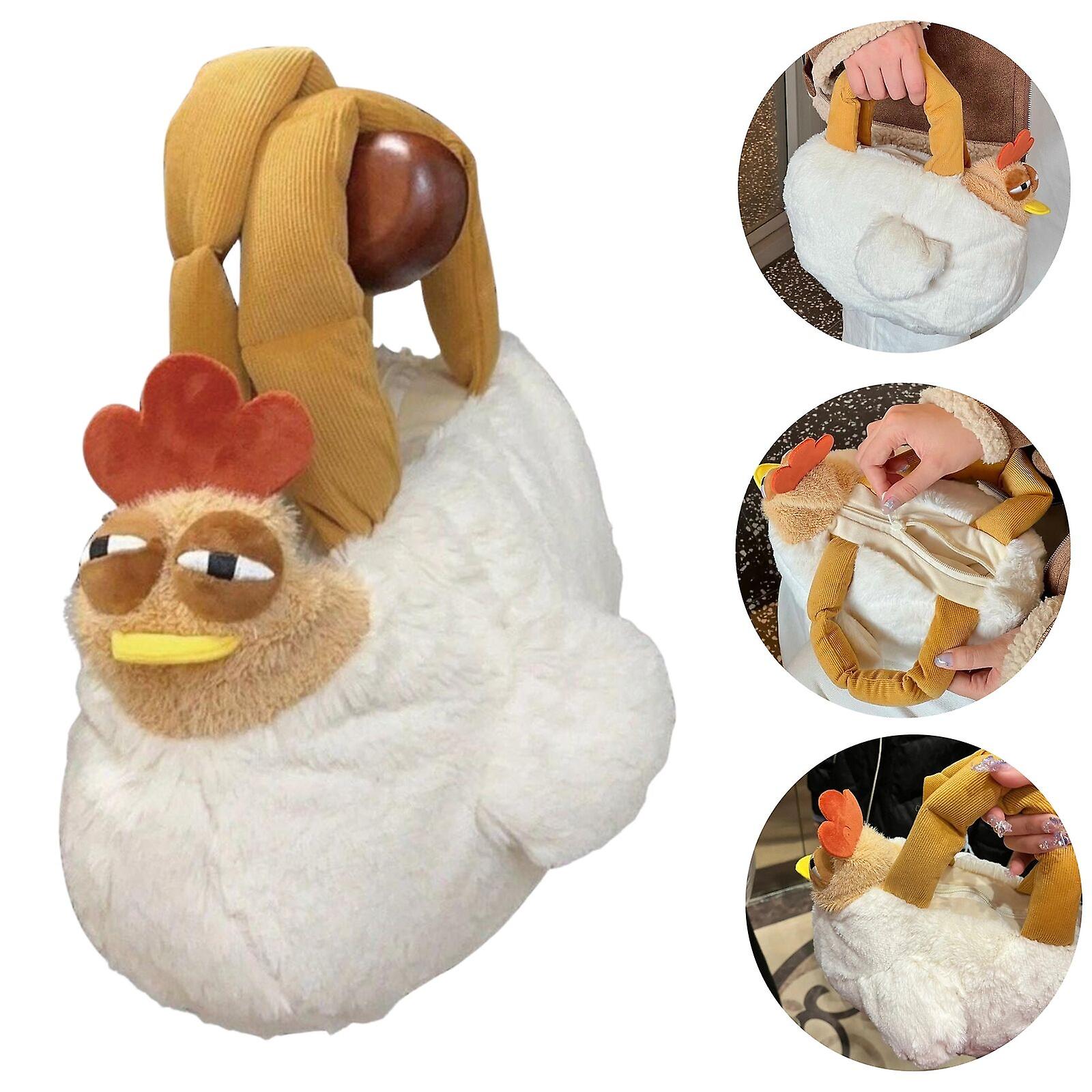 Womens Chicken Bag Novelty Plush Hen Purse Top Handbag White Elephant Gifts