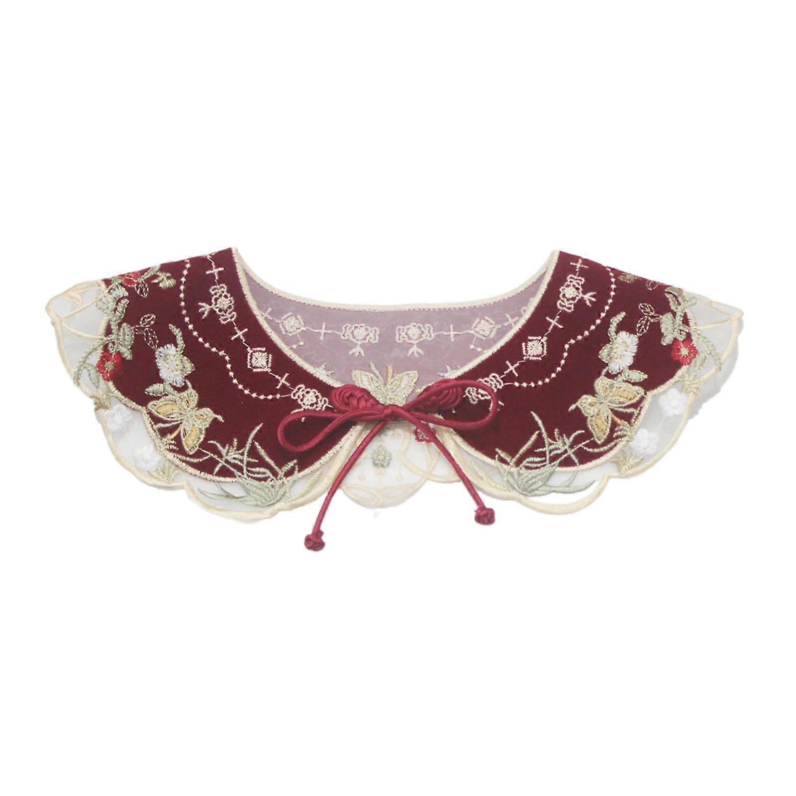 Womens Chinese Style Vintage Embroidered Butterfly Fake Collar Braided Tie Up Bowknot Shawl Wrap Capelet Dresses Costume Wine Red
