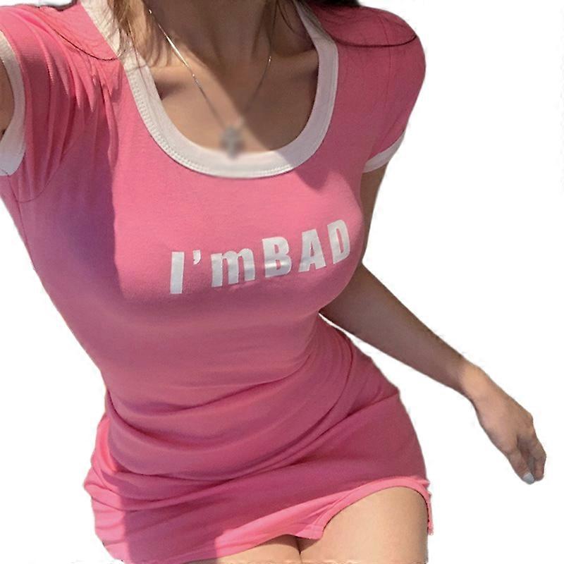 Women's Dress Split Short Sleeve Crew Neck Versatile Dress Korean Style