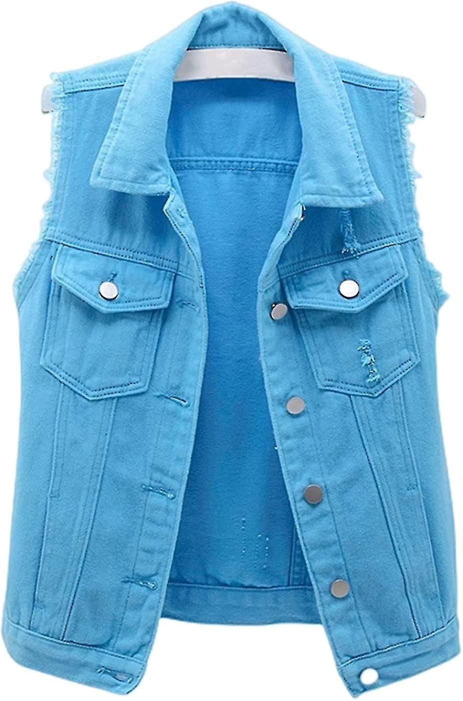 Womens Sleeveless Denim Vest Jacket Ripped Casual Waistcoat Lbz