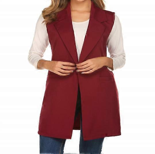 Women's Sleeveless Long Blazer Open Front Trench Vest Casual Lapel Blazer