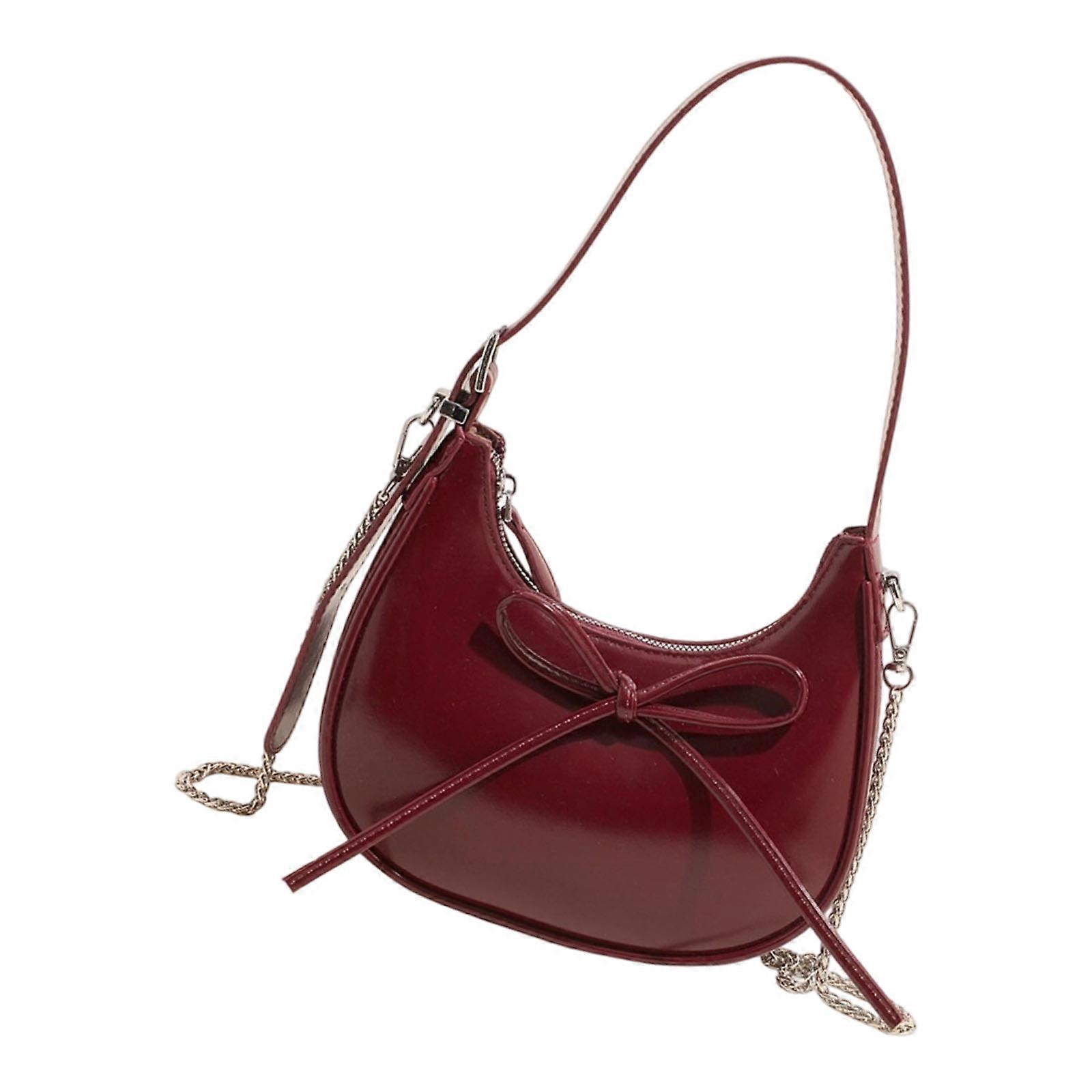 Women Bag PU Leather Underarm Purse Trendy Shoulder Bag Fashion Shopping Bag Bows Crossbody Bag Aesthetic Armpit Bag Burgundy