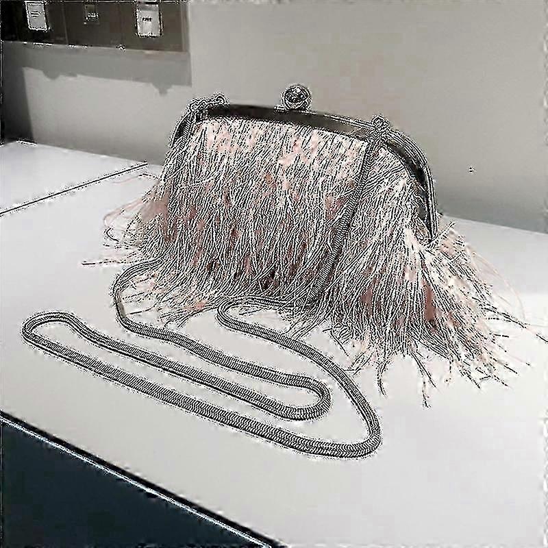 Ladies Handbag Feather Clutch Bag Luxury 2 Type Snake Chain &Pearl Short Chain