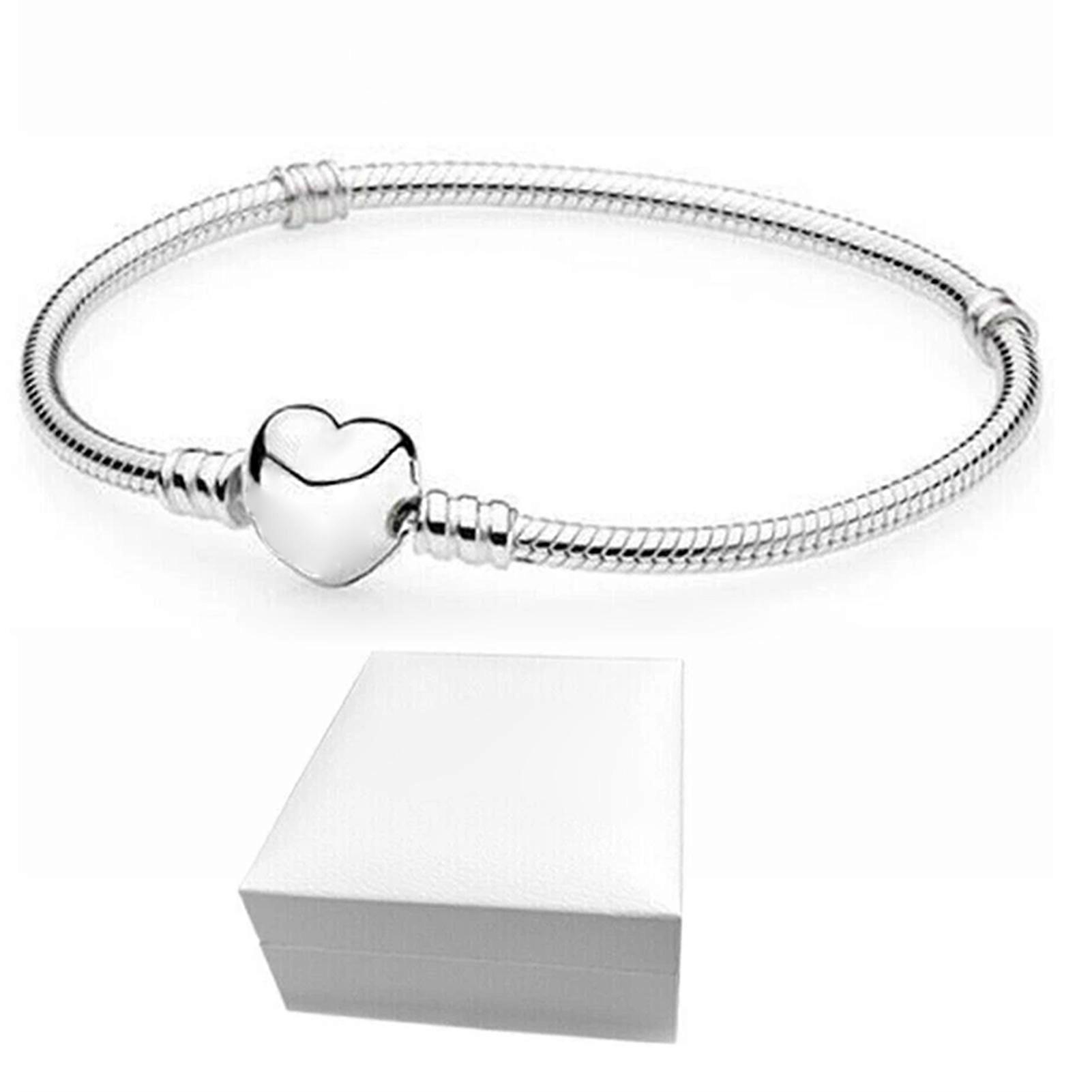 Womens Heart Clasp Snake Chain Bracelet Minimalist Sterling Silver Chain Bracelet 21cm