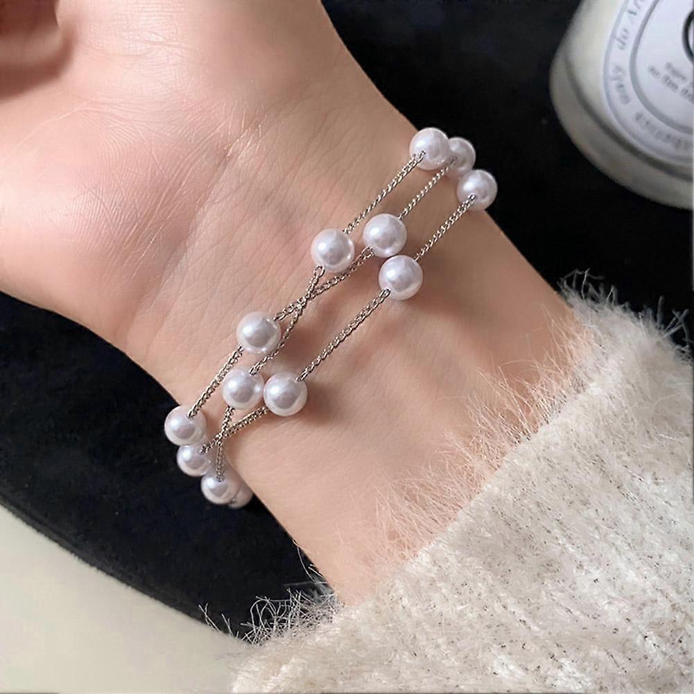 Womens Beaded Charm Pearl Bracelet Girls Bangle Wedding Jewellery Gift
