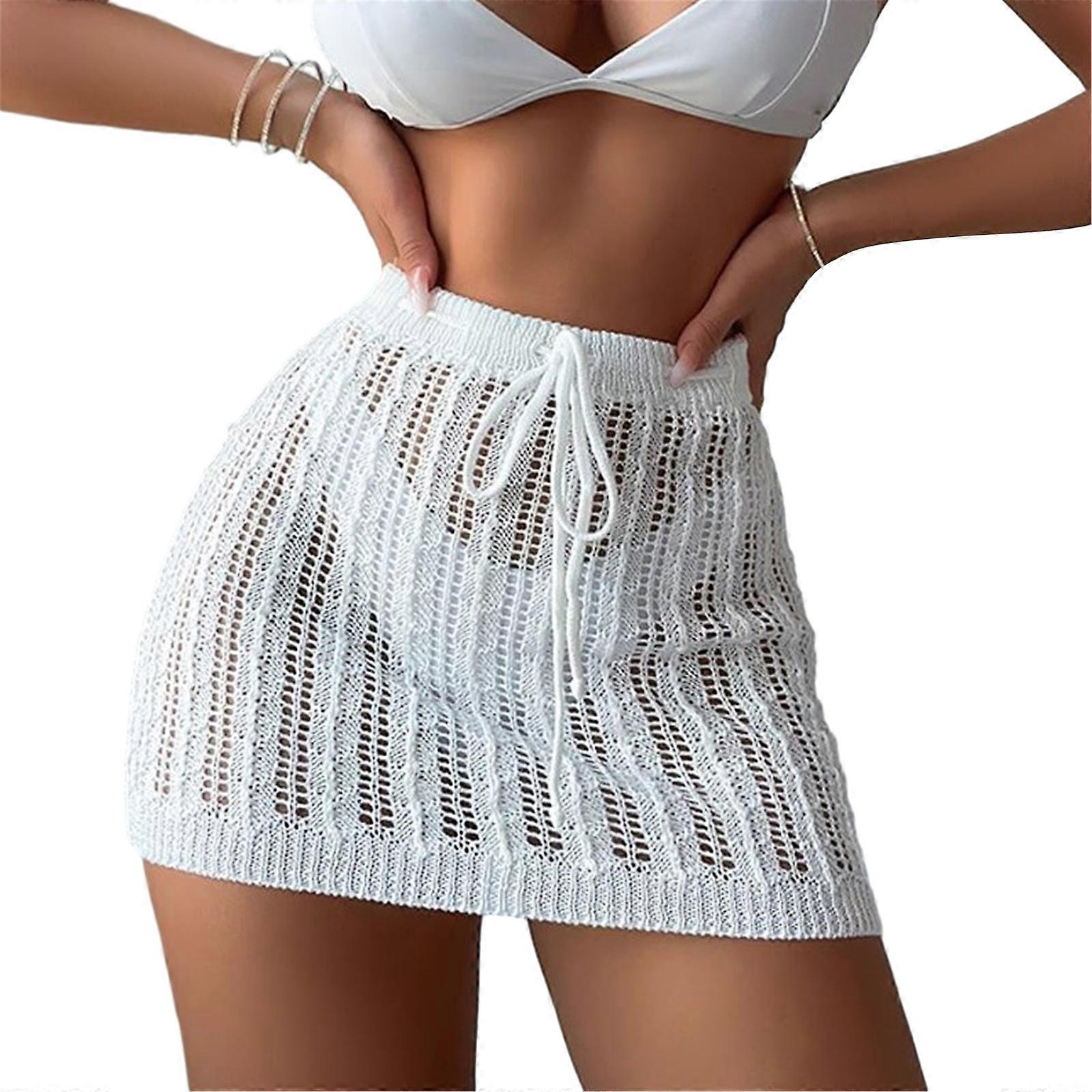 Womens Beach Dress Swimsuit Coverups Crochet Swimwears Wrap Skirt Dress Scarf Bathing Suit Beachwears Swimsuit Dress White S
