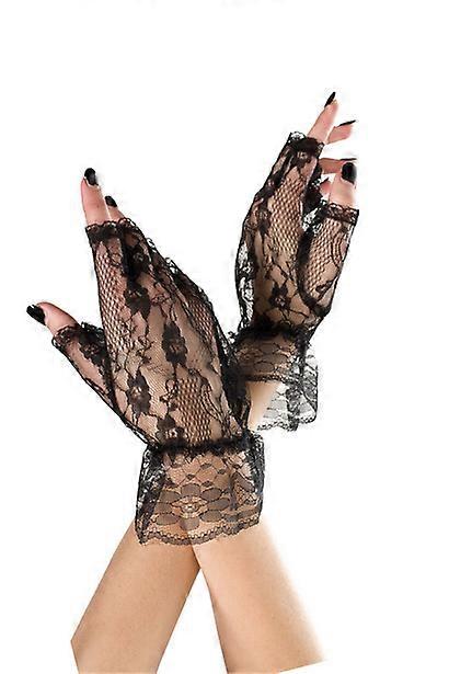 Ladies Black Fingerless Lace Gloves Halloween Party Accessory Fancy Dress Witch Glove(1pcs, black)