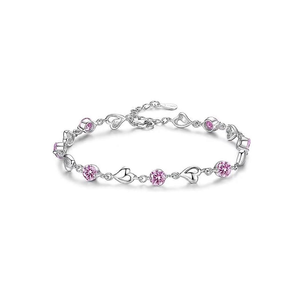 Ladies Bracelet Heart Bracelet Diamond Zircon Bracelet Women Girls Adjustable Love Heart Bracelet Pink
