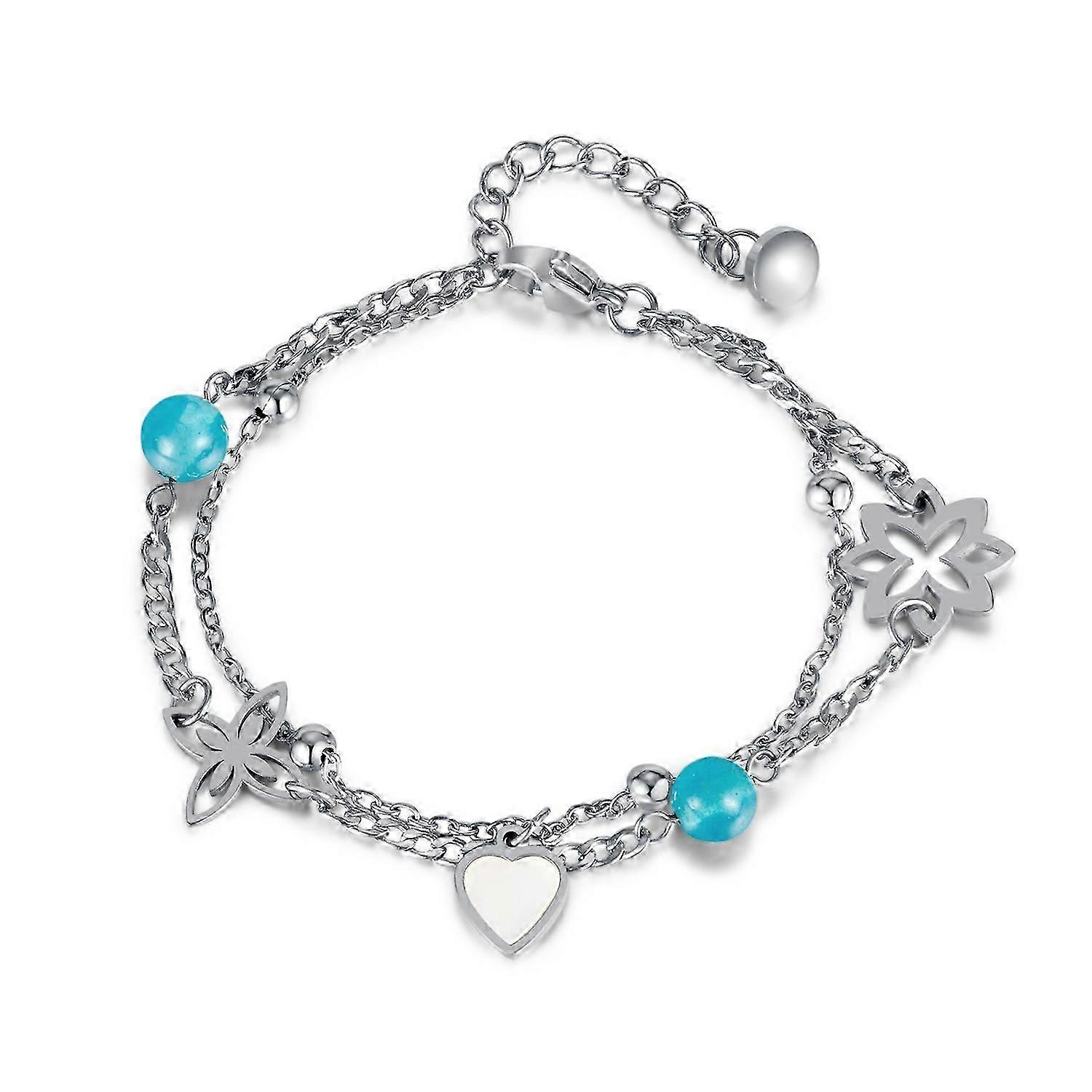 Women's bracelet, silver, double layer bracelet, fashionable, shell bracelet, adjustable, stainless steel, hypoallergenic, Valentine's Day