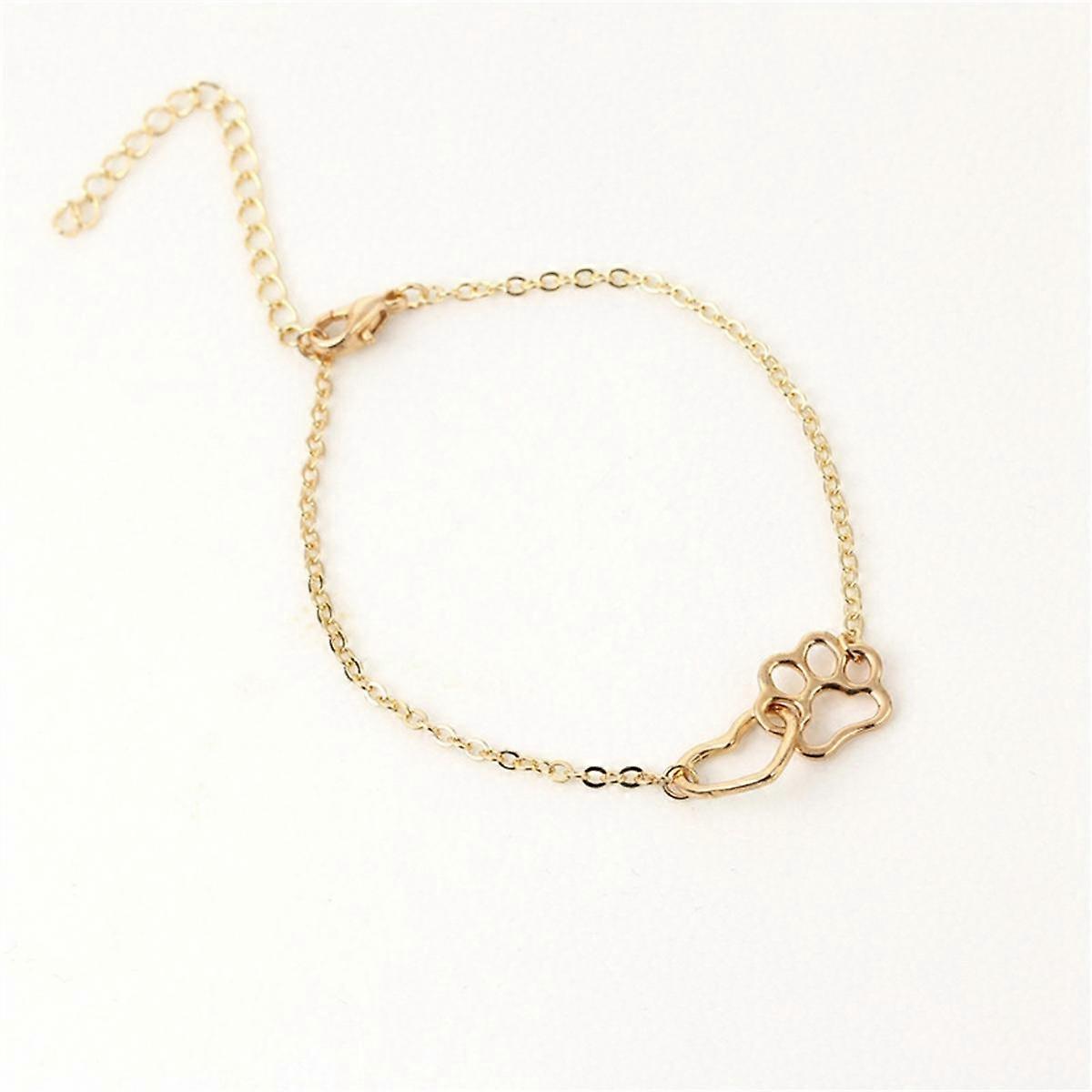 Women Bracelets Pet Footprint Bracelets Shellhards Cute Animal Dog Love Heart Charm Bracelet Gold