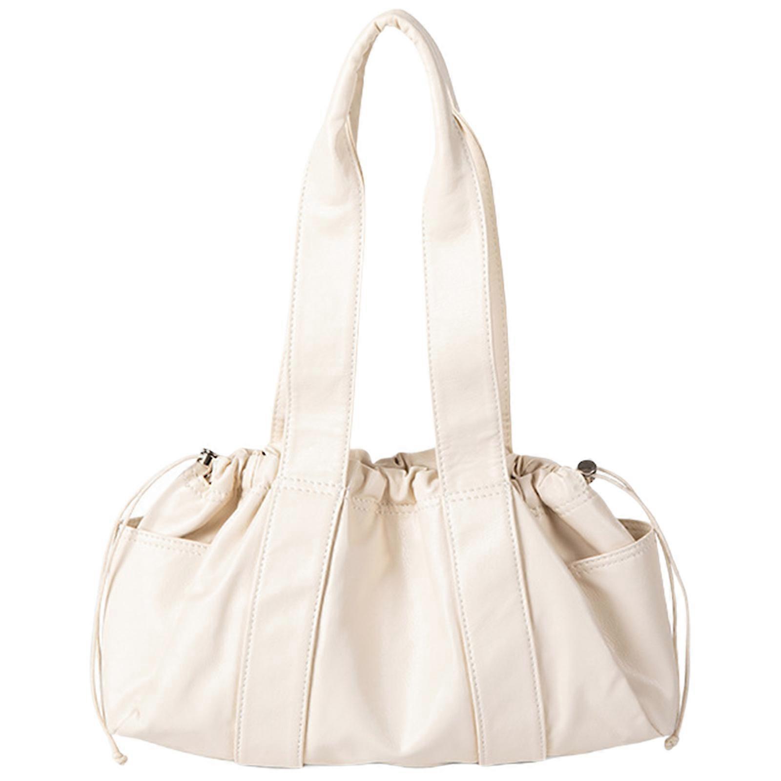 Womens Pleated Shoulder Bag PU Leather Underarm Bag Korean Styles Armpit Bag Drawstring Handbags Fashion Commuting Bag White