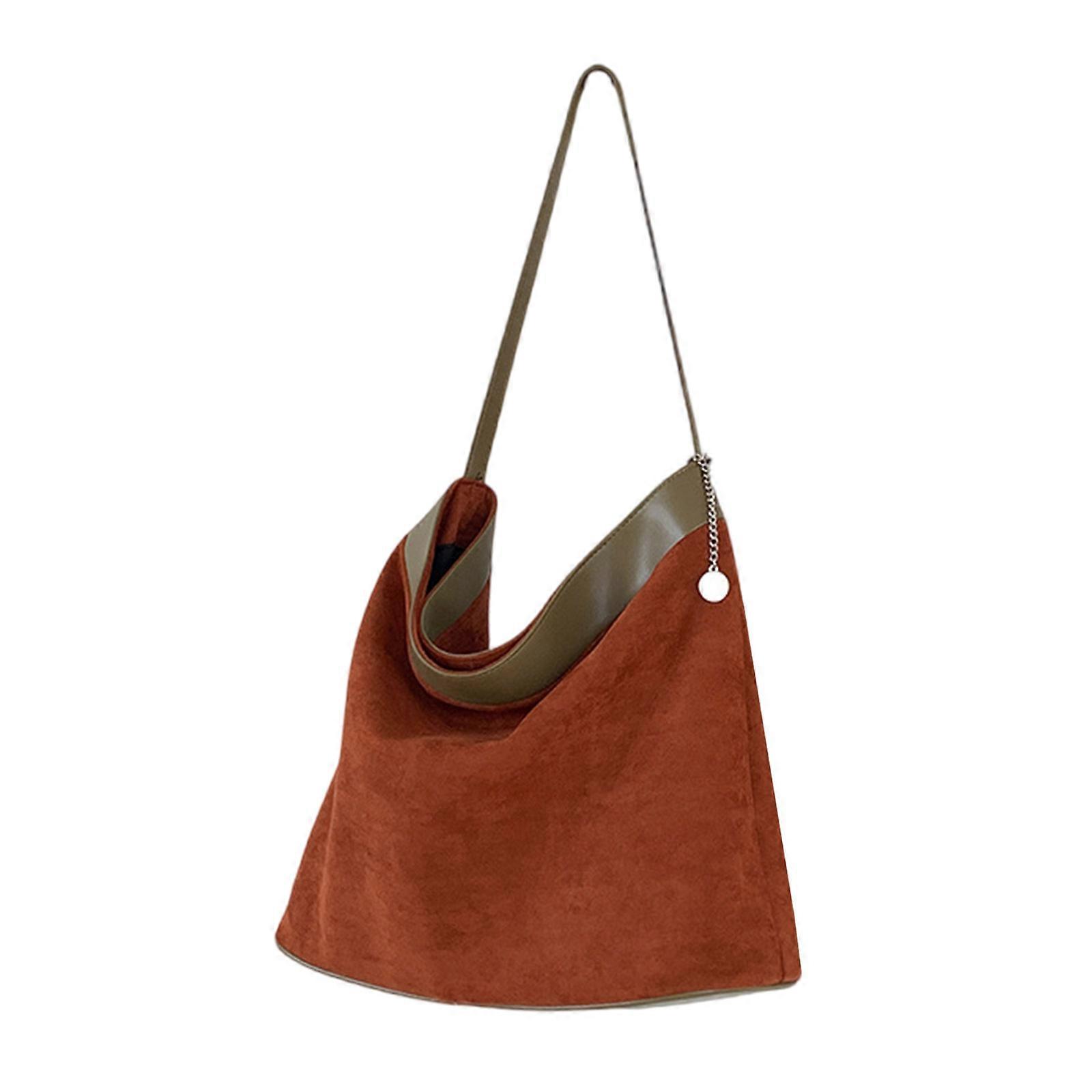 Women's Fashion Shoulder Bag PU Leather Slouchy Bag Patchwork Underarm Purse Casual Armpit Bags For Daily Use brown