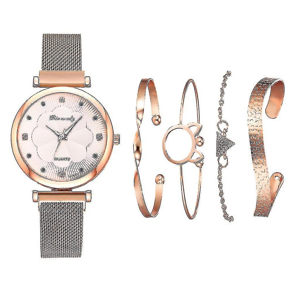 Ladies Fashion Simple Mesh Belt Magnetite Quartz Watch + Bracelet Set
