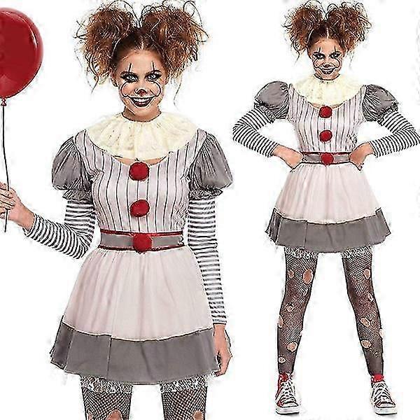 Women's Fashion Long Sleeve Creepy Clown Costume Casual Funny Halloween Dress