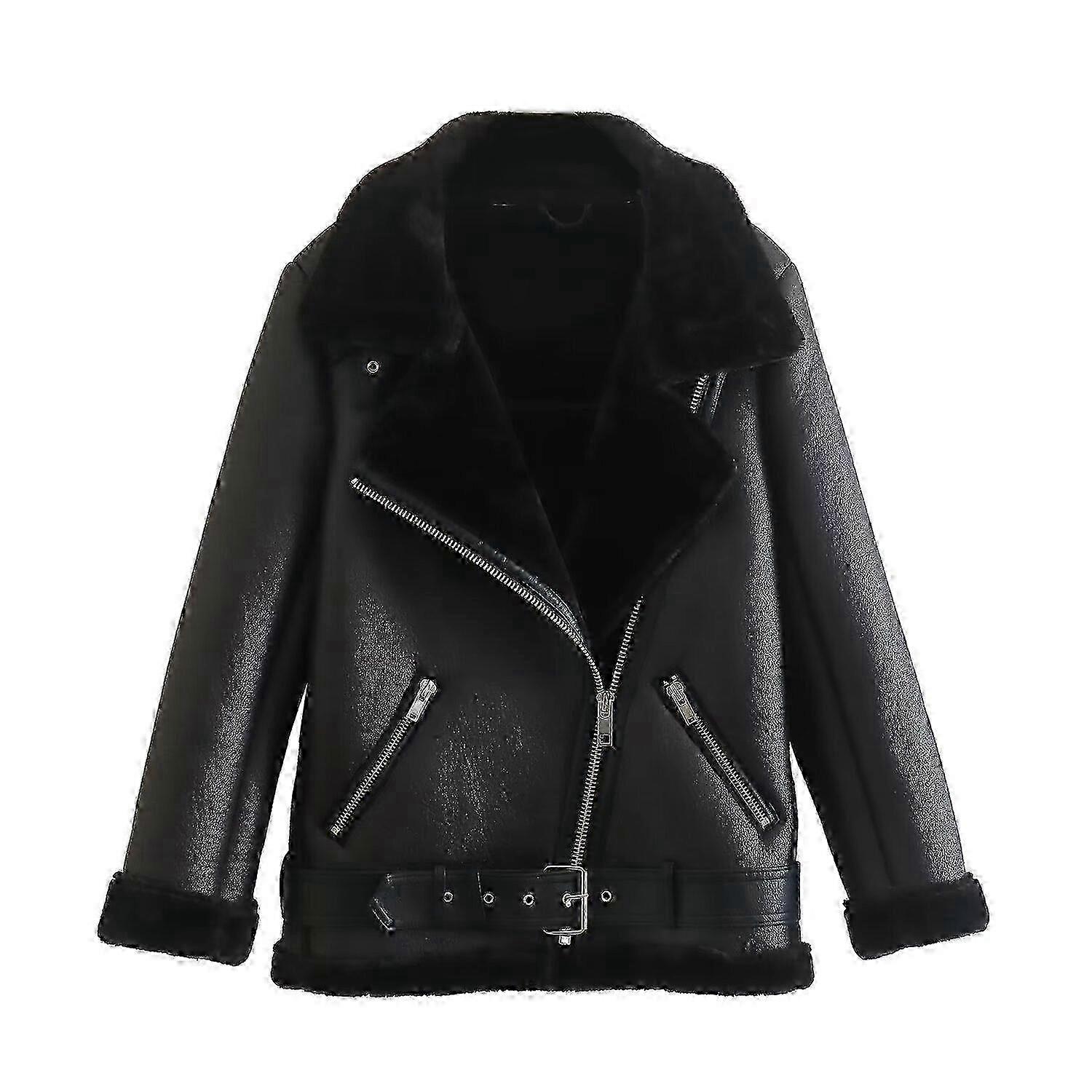 Women's Faux Shearing Moto Jacket Thick Lined Parka Winter Shearling Coat Leather Jacket