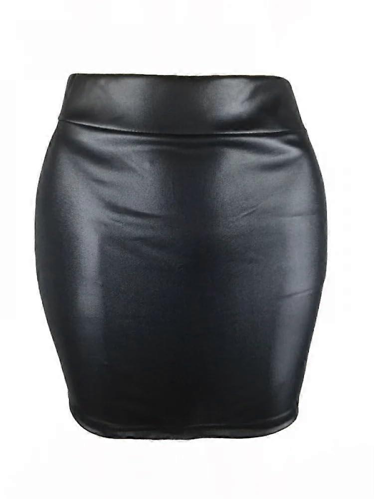 Ladies Faux Leather Mini Skirt, Summer Bodycon PU Skirt for Women, Regular Waist, Solid Black, Size M