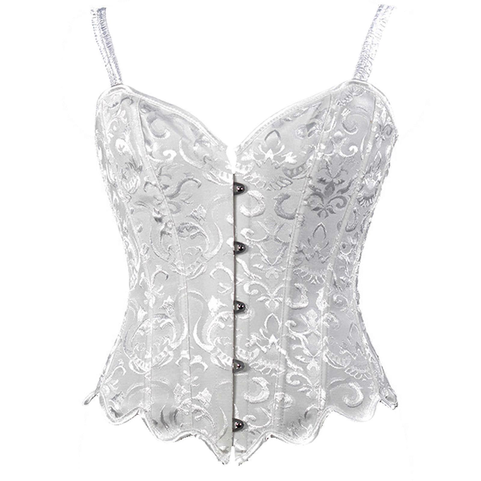 Corsets for Womens Floral Overbust Corset Bustier Lingeries Top Backless Corset Top Casual Sleeveless Tanks Tops White XL