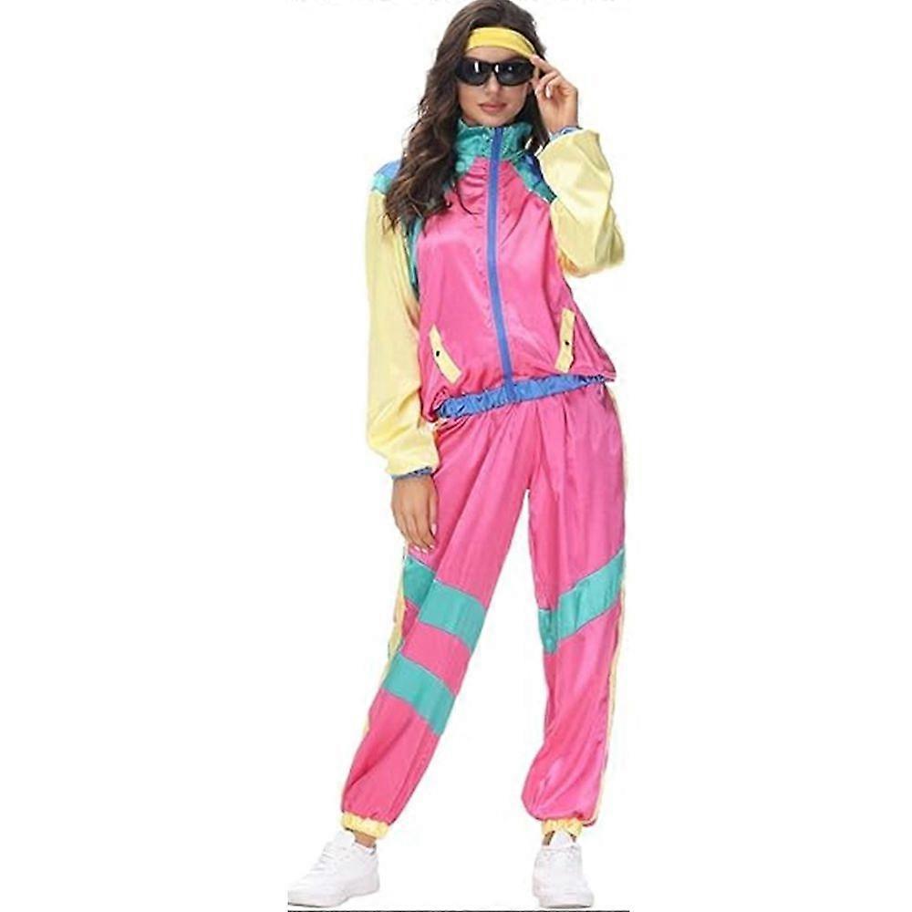 Womens Men 80s 90s Tracksuit Retro Hip Hop Windbreaker Retro Disco Colorblock Coat Trouser Tracksuit Set