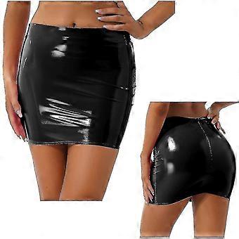 Womens Latex Patent Leather Miniskirt Solid Color Elastic Waistband Glossy Pencil Skirt Night Club Party Music Festival Costume