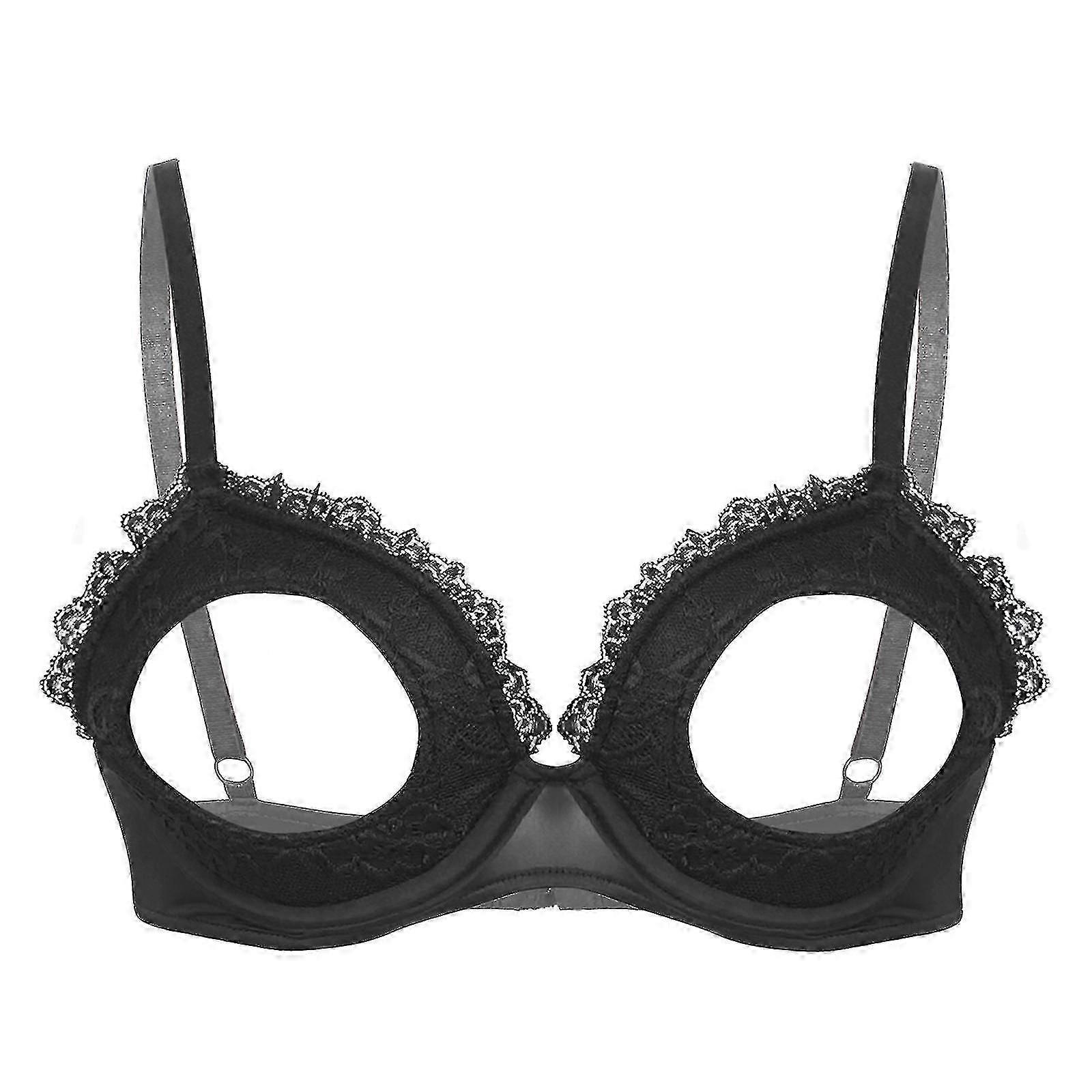 Womens Lingerie Cutout Padded Underwired Bra Tops Adjustable Straps Open Chest Bras Hollow Out Lace Brassiere Underwear