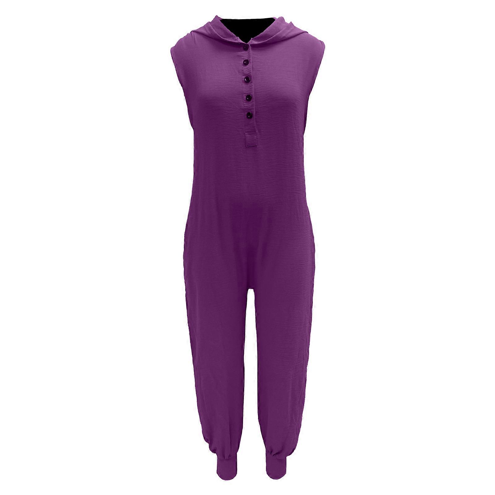 Women\'s Loose Jumpsuit Sleeveless Button-up V Neck Baggy Pants Rompers for Summer Early Autumn Spring