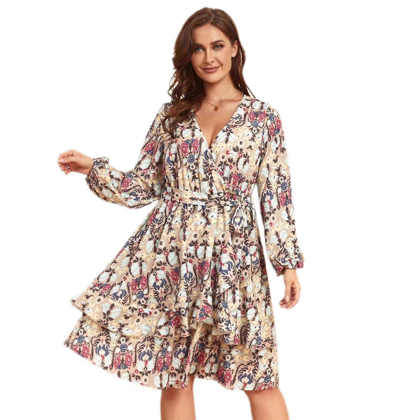 Women's Layered Ruffle Hem Dress Elegant Long Sleeve Dress Sexy V Neck Dress Plus Size Holiday Dress Summer Party Dress Blue XL
