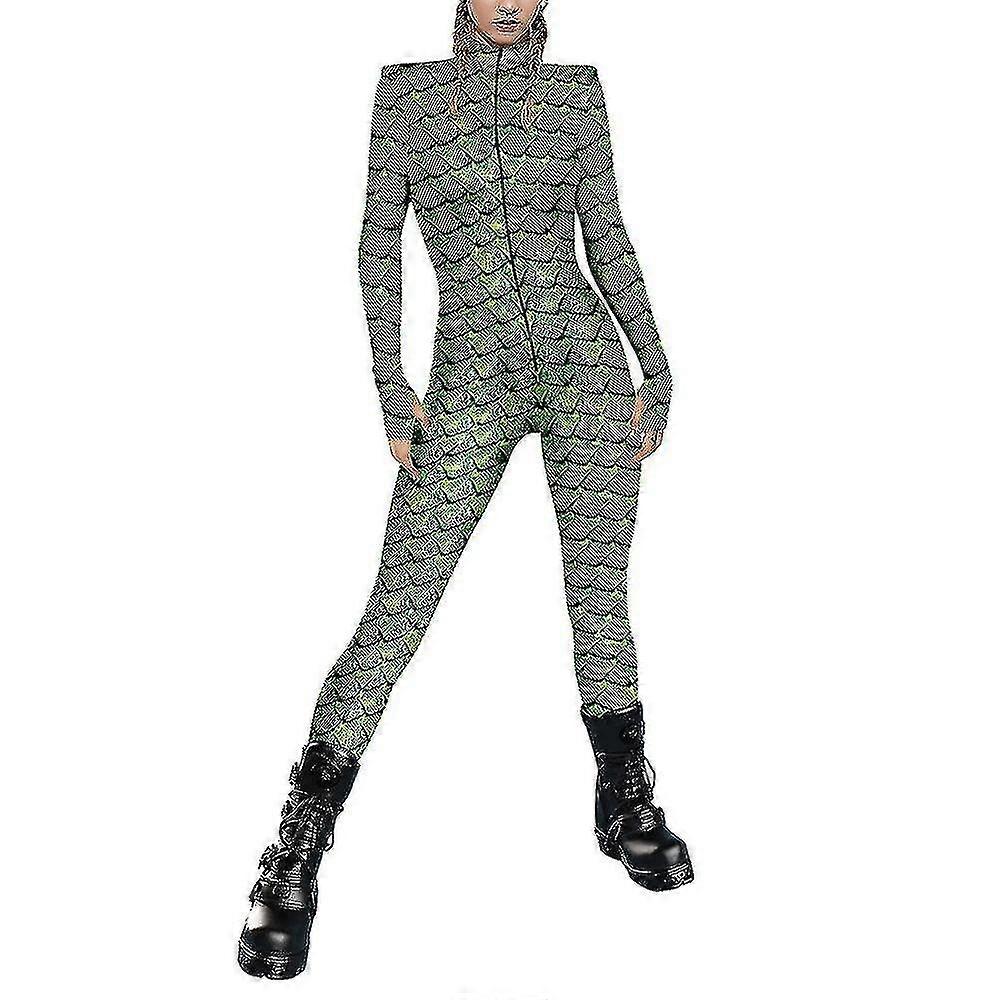 Ladies Womens Snake Skeleton Cosplay Costumes Jumpsuit Playsuit Halloween Party Fancy Dress R_c_Special Gift